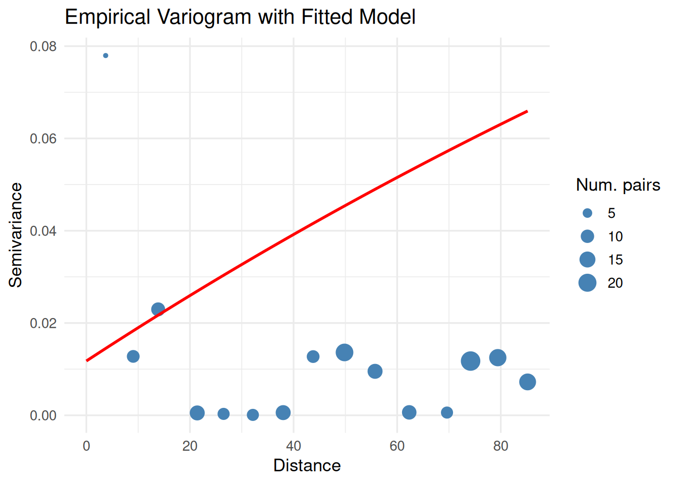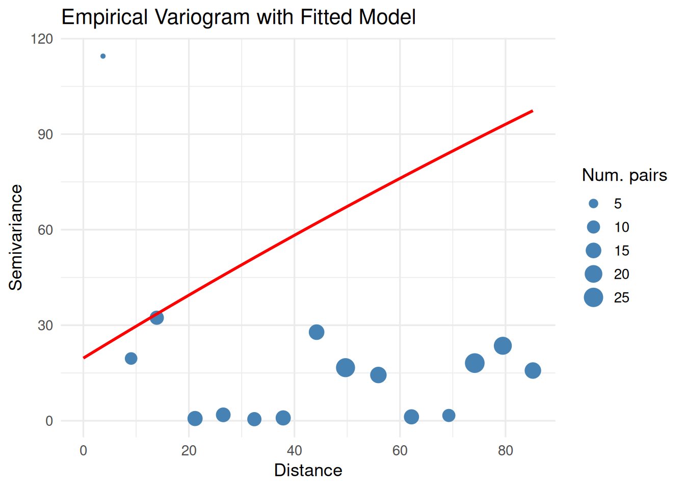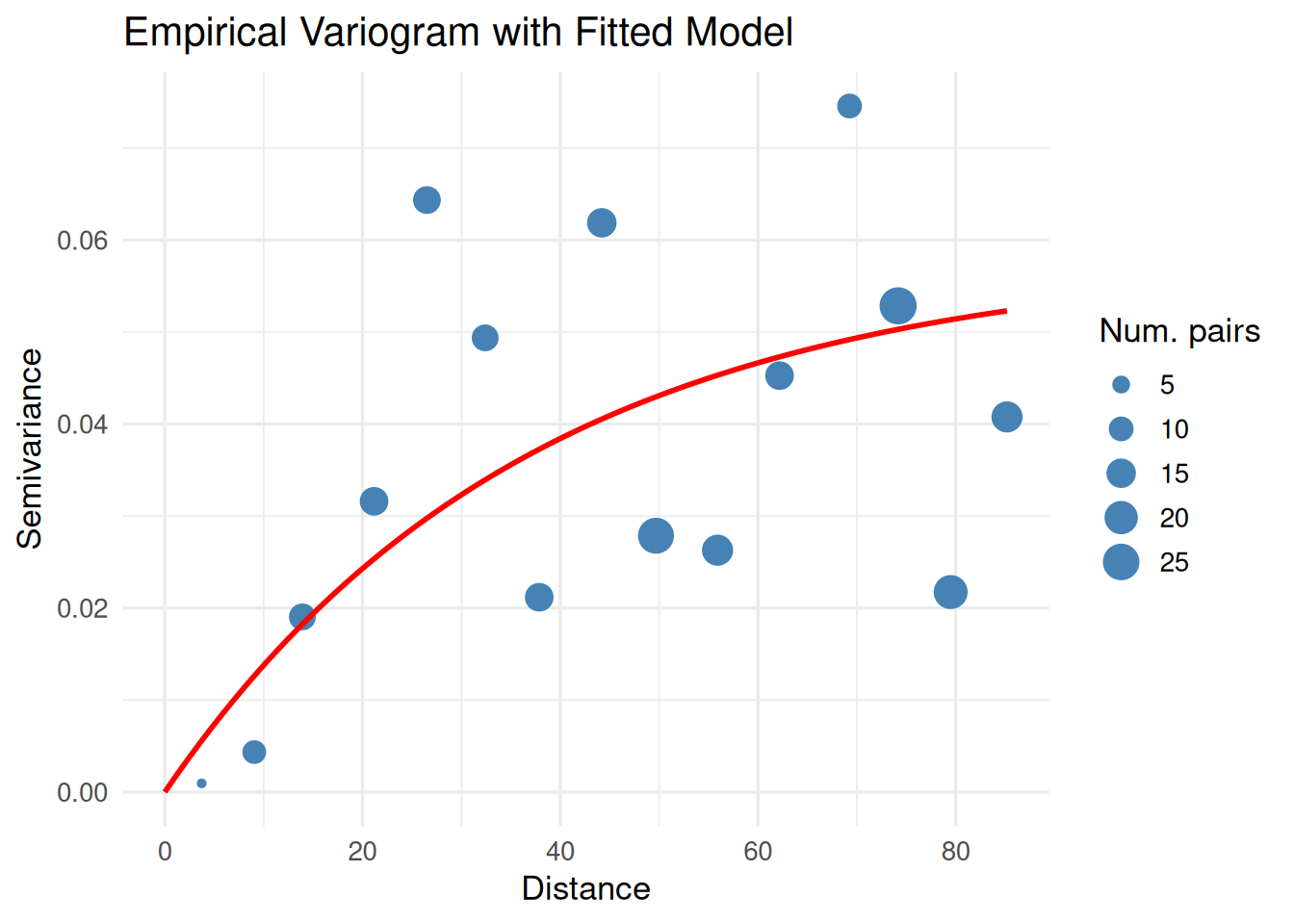 x = "Distance", y = "Semivariance", size = "Num. pairs") +