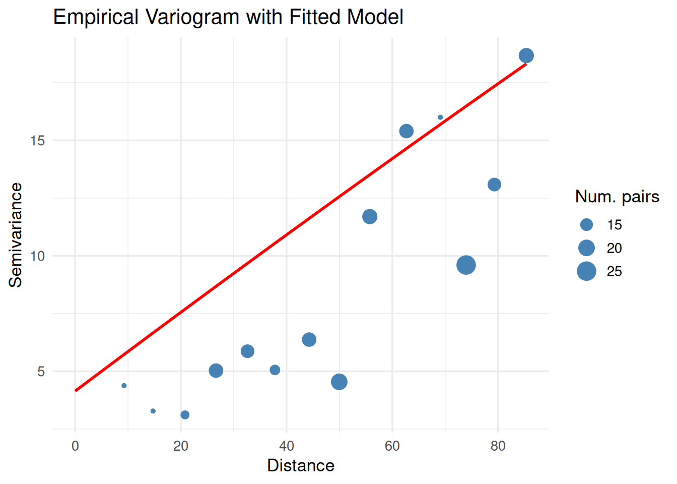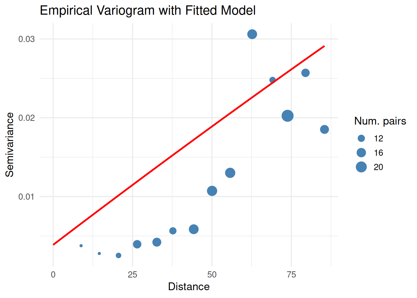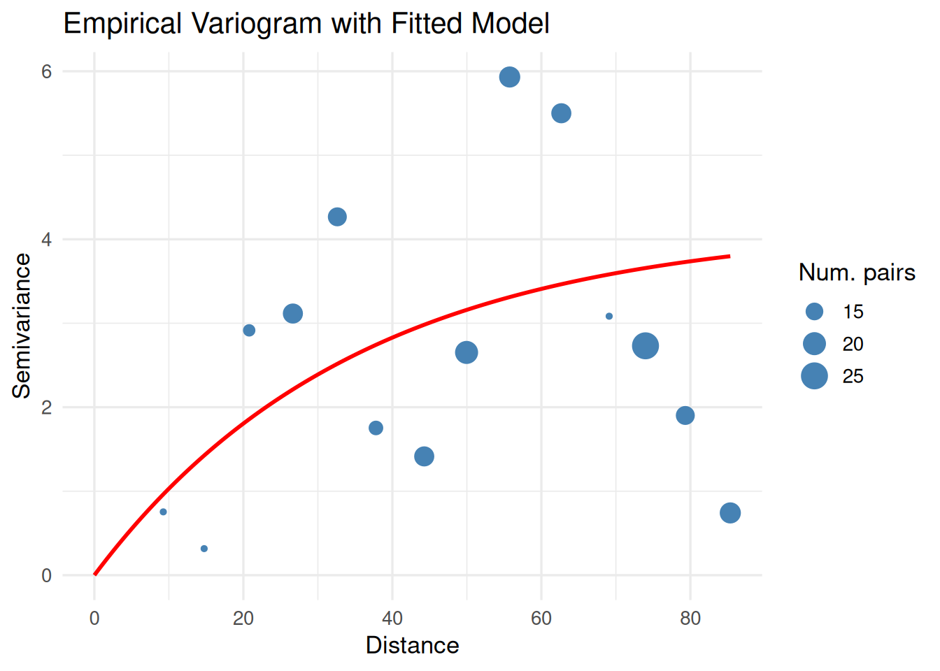 x = "Distance", y = "Semivariance", size = "Num. pairs") +