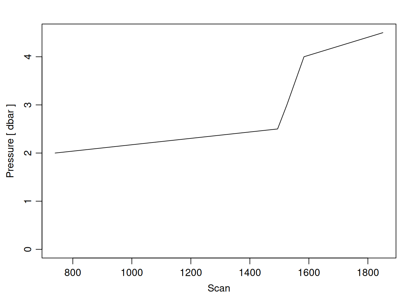 tryCatch({ trimmed_cast <-ctdTrim(cast) decimated_cast <-ctdDecimate(trimmed_cast, p =0.5)# plotting can cause the xlim failureplotScan(decimated_cast)# === export === cast_df <-as.data.frame(decimated_cast@data)# Add metadata cast_df <-mutate( cast_df,station = station_id,cruise_id = cruise_id )# drop NA rows left by cleaning cast_df <-subset(cast_df, !is.na(scan))# create folder if doesn't exist clean_data_loc <- here::here("data/02_clean")try(fs::dir_create(clean_data_loc))# save ctd to .csvwrite.csv(cast_df, glue("{clean_data_loc}/{params$cast_id}.csv"))}, error =function(e) {cat("\n=== CTD PROCESSING ERROR ===\n")cat("Cast ID:", params$cast_id, "\n")cat("Error message:\n", conditionMessage(e), "\n\n")# Safely inspect objects that might or might not exist when the error happenedif (exists("decimated_cast")) { df <-try(as.data.frame(decimated_cast@data), silent =TRUE)if (!inherits(df, "try-error")) {cat("Dataframe columns:\n")print(names(df))cat("\nSummary of key columns (scan, pressure, temperature, salinity if present):\n") known_cols <-intersect(c("scan", "pressure", "temp", "temperature", "salinity", "conductivity"), names(df))print(summary(df[known_cols], digits =3))cat("\nHead of dataframe:\n")print(head(df)) } else {cat("Could not extract dataframe from decimated_cast.\n") } } else {cat("decimated_cast was never created before the error.\n") }cat("\n=== END ERROR DEBUG INFO ===\n\n")})