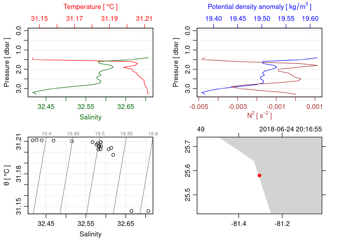 # TODO: Include param here that specifies to handle QC flags. This should be done before converting to a OCE object. QC flag columns are listed in [this spreadsheet](https://docs.google.com/spreadsheets/d/1uCxEmJRqErU-HCQiRQ1FpyiIqtNaGgMSBI0WvrtwBRU/edit?gid=137286311#gid=137286311) and are not supposed to be included in the oce object. QC param values are : # 1 good# 2 +/- 3*std_dev# 4 +/- 5*std_dev# 9 missing# Data column should be set to NA if corresponding QC column has value greater than threshold (recommended threshold is 5*std_dev).# Will need to loop through *_qc columns.# TODO: drop spikes (how? low-pass?).# TODO: combine replicate sensors (eg temp1 temp2).