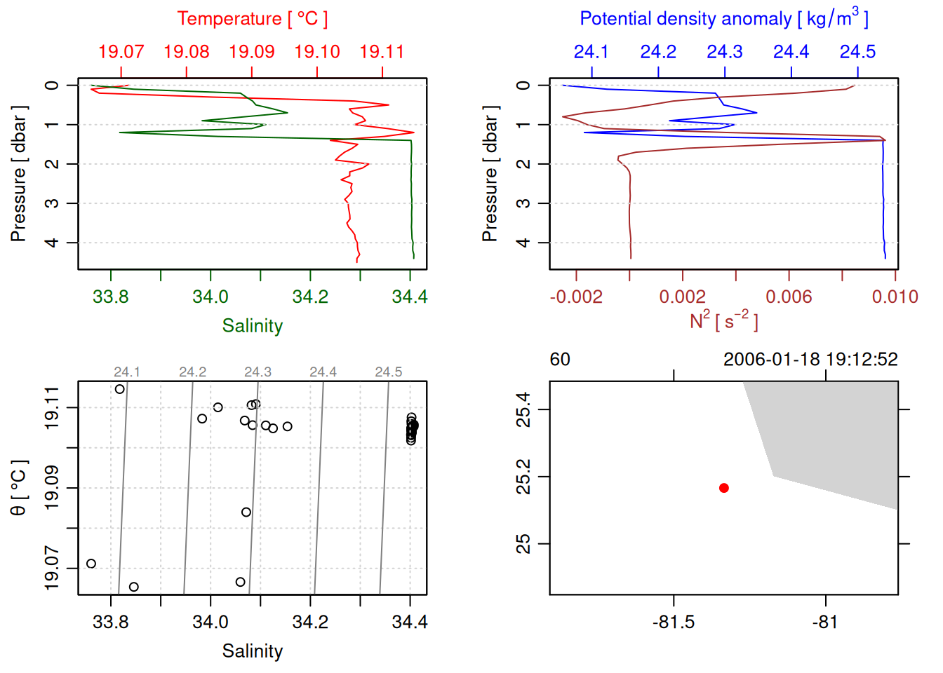 # TODO: Include param here that specifies to handle QC flags. This should be done before converting to a OCE object. QC flag columns are listed in [this spreadsheet](https://docs.google.com/spreadsheets/d/1uCxEmJRqErU-HCQiRQ1FpyiIqtNaGgMSBI0WvrtwBRU/edit?gid=137286311#gid=137286311) and are not supposed to be included in the oce object. QC param values are : # 1 good# 2 +/- 3*std_dev# 4 +/- 5*std_dev# 9 missing# Data column should be set to NA if corresponding QC column has value greater than threshold (recommended threshold is 5*std_dev).# Will need to loop through *_qc columns.# TODO: drop spikes (how? low-pass?).# TODO: combine replicate sensors (eg temp1 temp2).