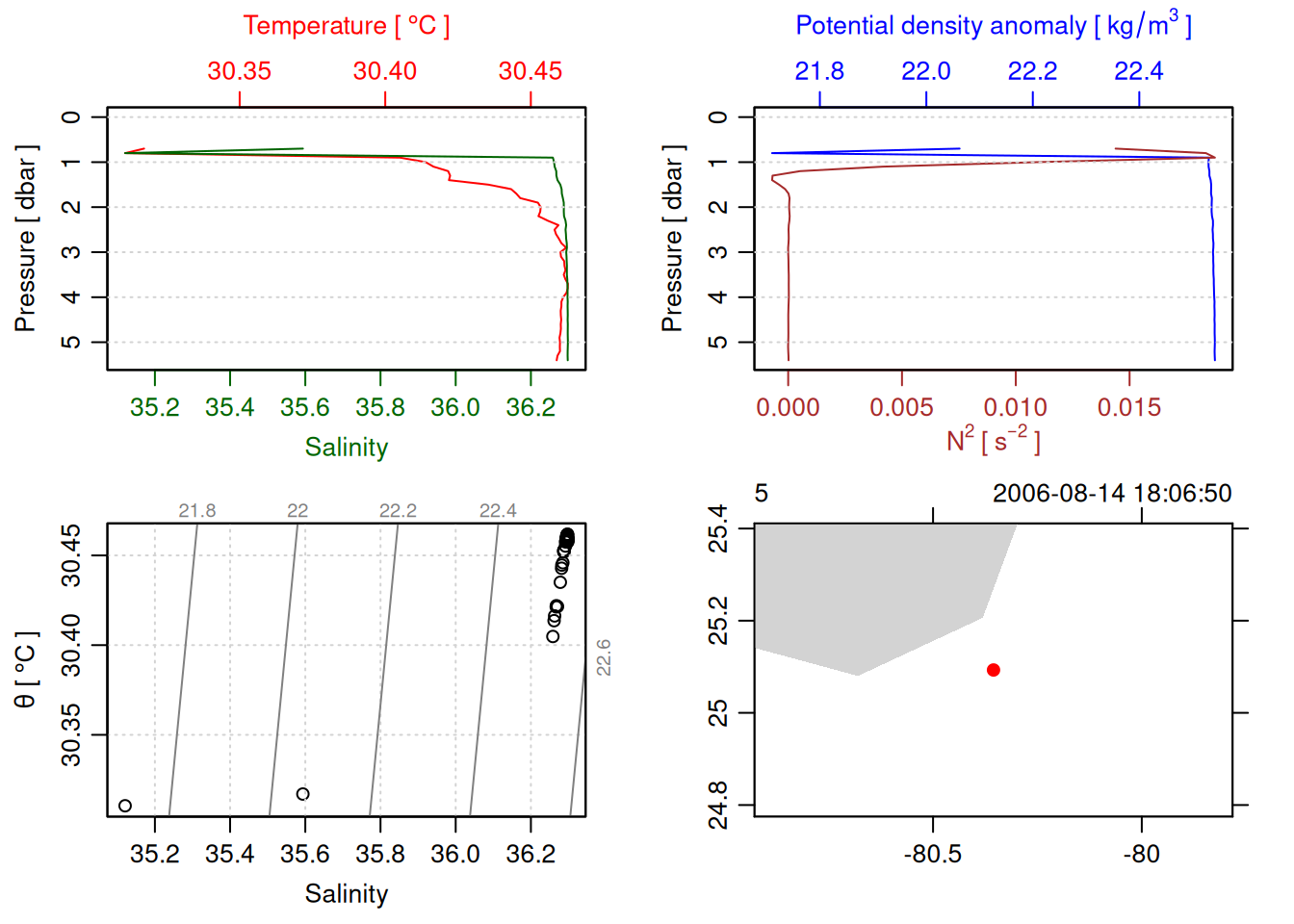 # TODO: Include param here that specifies to handle QC flags. This should be done before converting to a OCE object. QC flag columns are listed in [this spreadsheet](https://docs.google.com/spreadsheets/d/1uCxEmJRqErU-HCQiRQ1FpyiIqtNaGgMSBI0WvrtwBRU/edit?gid=137286311#gid=137286311) and are not supposed to be included in the oce object. QC param values are : # 1 good# 2 +/- 3*std_dev# 4 +/- 5*std_dev# 9 missing# Data column should be set to NA if corresponding QC column has value greater than threshold (recommended threshold is 5*std_dev).# Will need to loop through *_qc columns.# TODO: drop spikes (how? low-pass?).# TODO: combine replicate sensors (eg temp1 temp2).