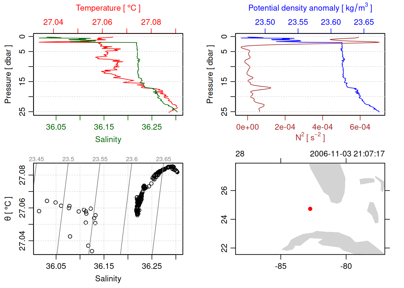 # TODO: Include param here that specifies to handle QC flags. This should be done before converting to a OCE object. QC flag columns are listed in [this spreadsheet](https://docs.google.com/spreadsheets/d/1uCxEmJRqErU-HCQiRQ1FpyiIqtNaGgMSBI0WvrtwBRU/edit?gid=137286311#gid=137286311) and are not supposed to be included in the oce object. QC param values are : # 1 good# 2 +/- 3*std_dev# 4 +/- 5*std_dev# 9 missing# Data column should be set to NA if corresponding QC column has value greater than threshold (recommended threshold is 5*std_dev).# Will need to loop through *_qc columns.# TODO: drop spikes (how? low-pass?).# TODO: combine replicate sensors (eg temp1 temp2).
