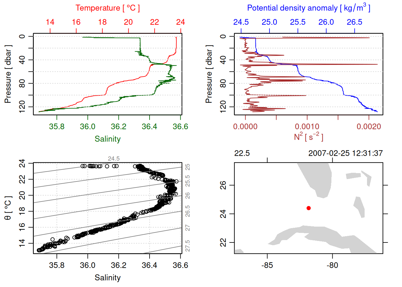 # TODO: Include param here that specifies to handle QC flags. This should be done before converting to a OCE object. QC flag columns are listed in [this spreadsheet](https://docs.google.com/spreadsheets/d/1uCxEmJRqErU-HCQiRQ1FpyiIqtNaGgMSBI0WvrtwBRU/edit?gid=137286311#gid=137286311) and are not supposed to be included in the oce object. QC param values are : # 1 good# 2 +/- 3*std_dev# 4 +/- 5*std_dev# 9 missing# Data column should be set to NA if corresponding QC column has value greater than threshold (recommended threshold is 5*std_dev).# Will need to loop through *_qc columns.# TODO: drop spikes (how? low-pass?).# TODO: combine replicate sensors (eg temp1 temp2).