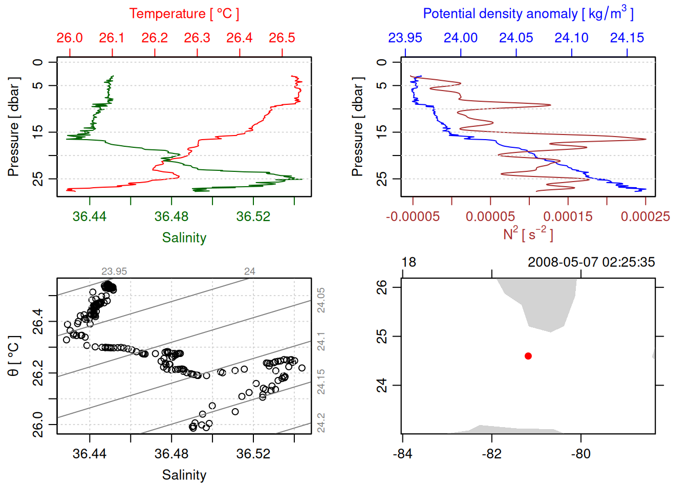 # TODO: Include param here that specifies to handle QC flags. This should be done before converting to a OCE object. QC flag columns are listed in [this spreadsheet](https://docs.google.com/spreadsheets/d/1uCxEmJRqErU-HCQiRQ1FpyiIqtNaGgMSBI0WvrtwBRU/edit?gid=137286311#gid=137286311) and are not supposed to be included in the oce object. QC param values are : # 1 good# 2 +/- 3*std_dev# 4 +/- 5*std_dev# 9 missing# Data column should be set to NA if corresponding QC column has value greater than threshold (recommended threshold is 5*std_dev).# Will need to loop through *_qc columns.# TODO: drop spikes (how? low-pass?).# TODO: combine replicate sensors (eg temp1 temp2).