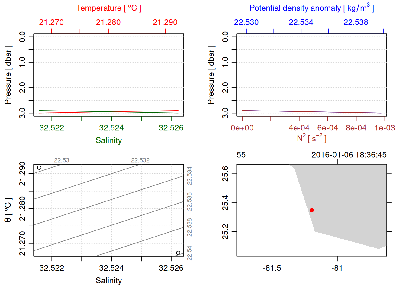 # TODO: Include param here that specifies to handle QC flags. This should be done before converting to a OCE object. QC flag columns are listed in [this spreadsheet](https://docs.google.com/spreadsheets/d/1uCxEmJRqErU-HCQiRQ1FpyiIqtNaGgMSBI0WvrtwBRU/edit?gid=137286311#gid=137286311) and are not supposed to be included in the oce object. QC param values are : # 1 good# 2 +/- 3*std_dev# 4 +/- 5*std_dev# 9 missing# Data column should be set to NA if corresponding QC column has value greater than threshold (recommended threshold is 5*std_dev).# Will need to loop through *_qc columns.# TODO: drop spikes (how? low-pass?).# TODO: combine replicate sensors (eg temp1 temp2).