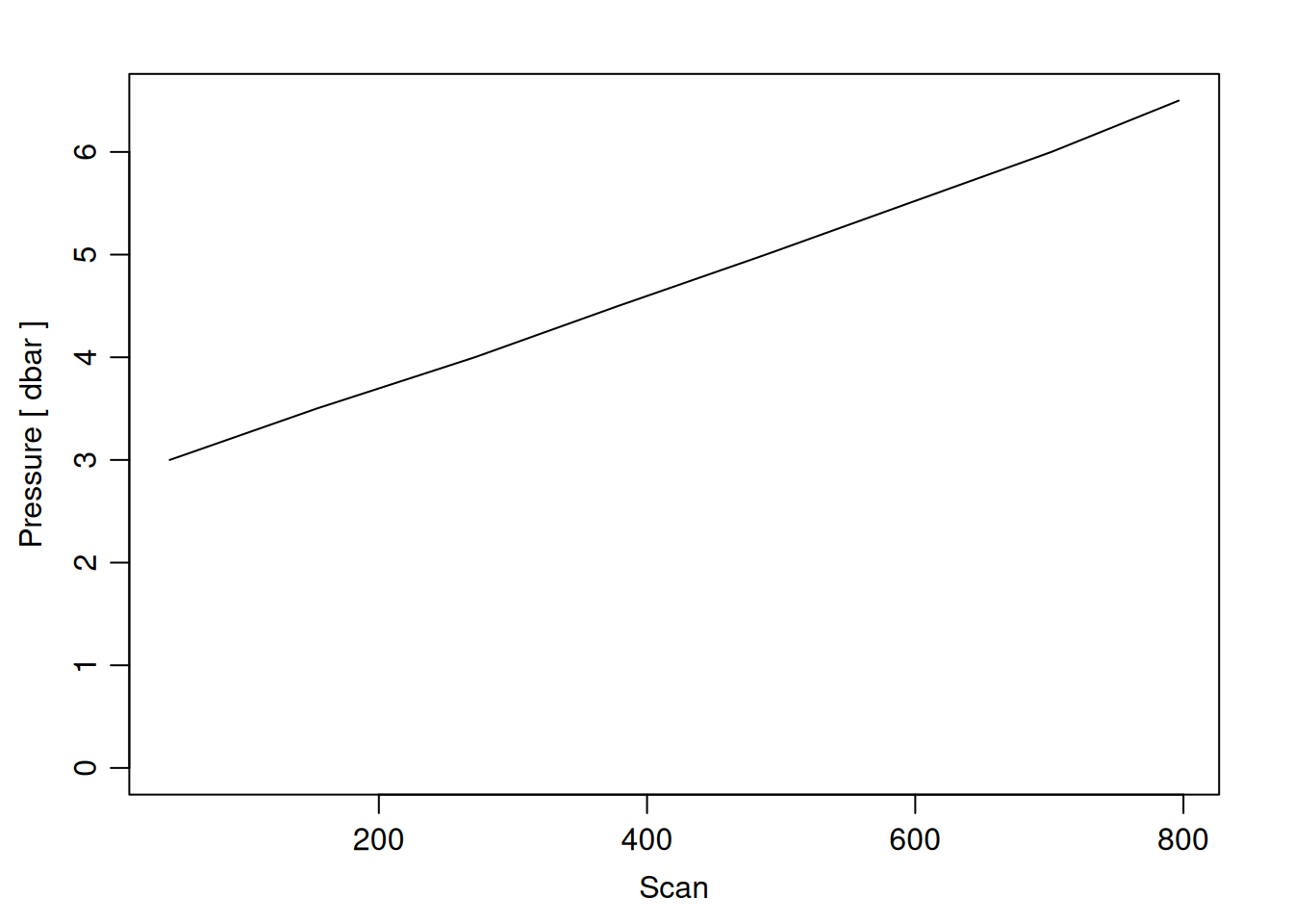 tryCatch({ trimmed_cast <-ctdTrim(cast) decimated_cast <-ctdDecimate(trimmed_cast, p =0.5)# plotting can cause the xlim failureplotScan(decimated_cast)# === export === cast_df <-as.data.frame(decimated_cast@data)# Add metadata cast_df <-mutate( cast_df,station = station_id,cruise_id = cruise_id )# drop NA rows left by cleaning cast_df <-subset(cast_df, !is.na(scan))# create folder if doesn't exist clean_data_loc <- here::here("data/02_clean")try(fs::dir_create(clean_data_loc))# save ctd to .csvwrite.csv(cast_df, glue("{clean_data_loc}/{params$cast_id}.csv"))}, error =function(e) {cat("\n=== CTD PROCESSING ERROR ===\n")cat("Cast ID:", params$cast_id, "\n")cat("Error message:\n", conditionMessage(e), "\n\n")# Safely inspect objects that might or might not exist when the error happenedif (exists("decimated_cast")) { df <-try(as.data.frame(decimated_cast@data), silent =TRUE)if (!inherits(df, "try-error")) {cat("Dataframe columns:\n")print(names(df))cat("\nSummary of key columns (scan, pressure, temperature, salinity if present):\n") known_cols <-intersect(c("scan", "pressure", "temp", "temperature", "salinity", "conductivity"), names(df))print(summary(df[known_cols], digits =3))cat("\nHead of dataframe:\n")print(head(df)) } else {cat("Could not extract dataframe from decimated_cast.\n") } } else {cat("decimated_cast was never created before the error.\n") }cat("\n=== END ERROR DEBUG INFO ===\n\n")})