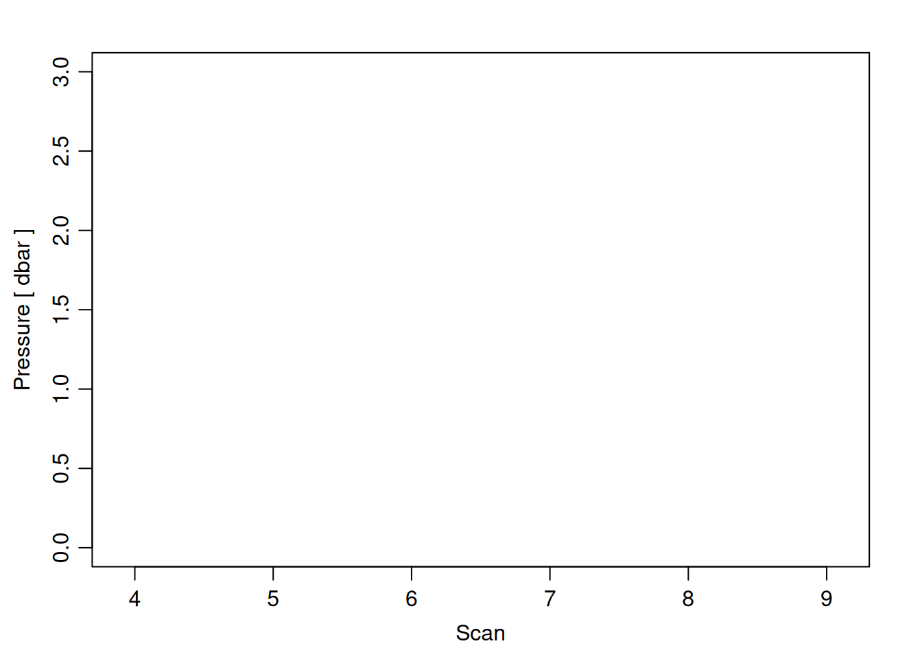 tryCatch({ trimmed_cast <-ctdTrim(cast) decimated_cast <-ctdDecimate(trimmed_cast, p =0.5)# plotting can cause the xlim failureplotScan(decimated_cast)# === export === cast_df <-as.data.frame(decimated_cast@data)# Add metadata cast_df <-mutate( cast_df,station = station_id,cruise_id = cruise_id )# drop NA rows left by cleaning cast_df <-subset(cast_df, !is.na(scan))# create folder if doesn't exist clean_data_loc <- here::here("data/02_clean")try(fs::dir_create(clean_data_loc))# save ctd to .csvwrite.csv(cast_df, glue("{clean_data_loc}/{params$cast_id}.csv"))}, error =function(e) {cat("\n=== CTD PROCESSING ERROR ===\n")cat("Cast ID:", params$cast_id, "\n")cat("Error message:\n", conditionMessage(e), "\n\n")# Safely inspect objects that might or might not exist when the error happenedif (exists("decimated_cast")) { df <-try(as.data.frame(decimated_cast@data), silent =TRUE)if (!inherits(df, "try-error")) {cat("Dataframe columns:\n")print(names(df))cat("\nSummary of key columns (scan, pressure, temperature, salinity if present):\n") known_cols <-intersect(c("scan", "pressure", "temp", "temperature", "salinity", "conductivity"), names(df))print(summary(df[known_cols], digits =3))cat("\nHead of dataframe:\n")print(head(df)) } else {cat("Could not extract dataframe from decimated_cast.\n") } } else {cat("decimated_cast was never created before the error.\n") }cat("\n=== END ERROR DEBUG INFO ===\n\n")})