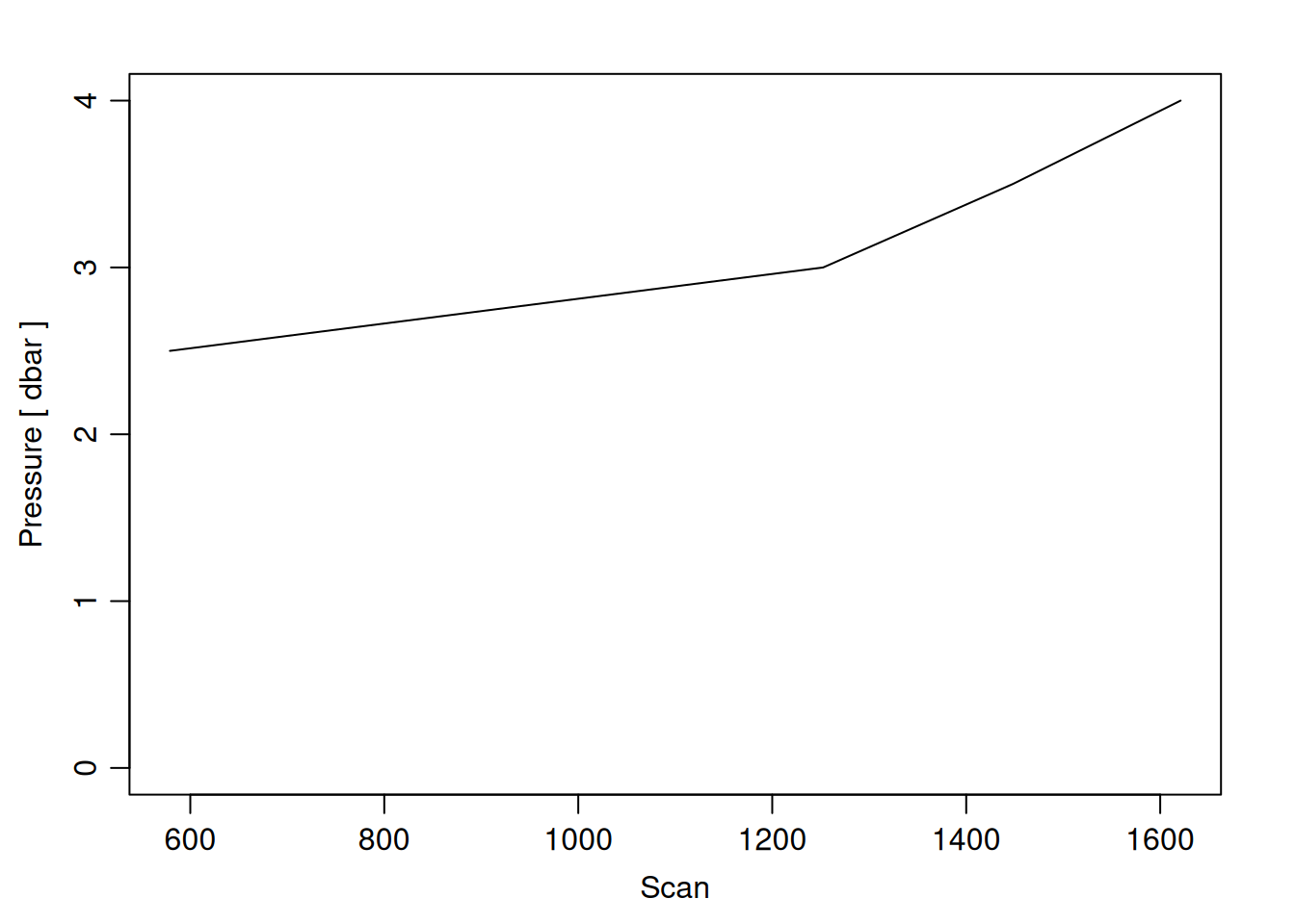 tryCatch({ trimmed_cast <-ctdTrim(cast) decimated_cast <-ctdDecimate(trimmed_cast, p =0.5)# plotting can cause the xlim failureplotScan(decimated_cast)# === export === cast_df <-as.data.frame(decimated_cast@data)# Add metadata cast_df <-mutate( cast_df,station = station_id,cruise_id = cruise_id )# drop NA rows left by cleaning cast_df <-subset(cast_df, !is.na(scan))# create folder if doesn't exist clean_data_loc <- here::here("data/02_clean")try(fs::dir_create(clean_data_loc))# save ctd to .csvwrite.csv(cast_df, glue("{clean_data_loc}/{params$cast_id}.csv"))}, error =function(e) {cat("\n=== CTD PROCESSING ERROR ===\n")cat("Cast ID:", params$cast_id, "\n")cat("Error message:\n", conditionMessage(e), "\n\n")# Safely inspect objects that might or might not exist when the error happenedif (exists("decimated_cast")) { df <-try(as.data.frame(decimated_cast@data), silent =TRUE)if (!inherits(df, "try-error")) {cat("Dataframe columns:\n")print(names(df))cat("\nSummary of key columns (scan, pressure, temperature, salinity if present):\n") known_cols <-intersect(c("scan", "pressure", "temp", "temperature", "salinity", "conductivity"), names(df))print(summary(df[known_cols], digits =3))cat("\nHead of dataframe:\n")print(head(df)) } else {cat("Could not extract dataframe from decimated_cast.\n") } } else {cat("decimated_cast was never created before the error.\n") }cat("\n=== END ERROR DEBUG INFO ===\n\n")})