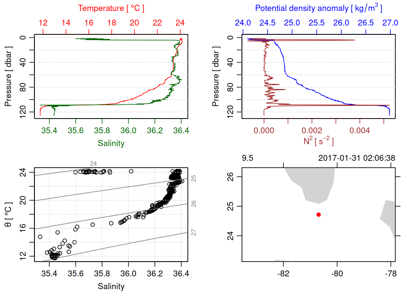 # TODO: Include param here that specifies to handle QC flags. This should be done before converting to a OCE object. QC flag columns are listed in [this spreadsheet](https://docs.google.com/spreadsheets/d/1uCxEmJRqErU-HCQiRQ1FpyiIqtNaGgMSBI0WvrtwBRU/edit?gid=137286311#gid=137286311) and are not supposed to be included in the oce object. QC param values are : # 1 good# 2 +/- 3*std_dev# 4 +/- 5*std_dev# 9 missing# Data column should be set to NA if corresponding QC column has value greater than threshold (recommended threshold is 5*std_dev).# Will need to loop through *_qc columns.# TODO: drop spikes (how? low-pass?).# TODO: combine replicate sensors (eg temp1 temp2).