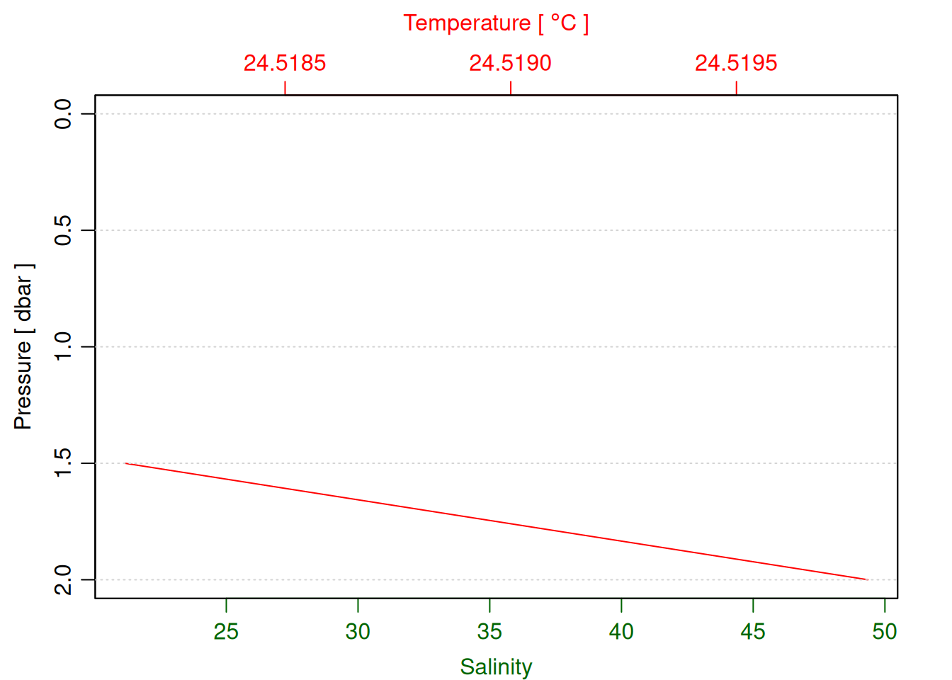 tryCatch({ oce::plotProfile(decimated_cast)# TODO: plot chl & do (prereq handle other_params in ctd_load_from_csv call above)}, error =function(e) {print("decimated cast not found")})