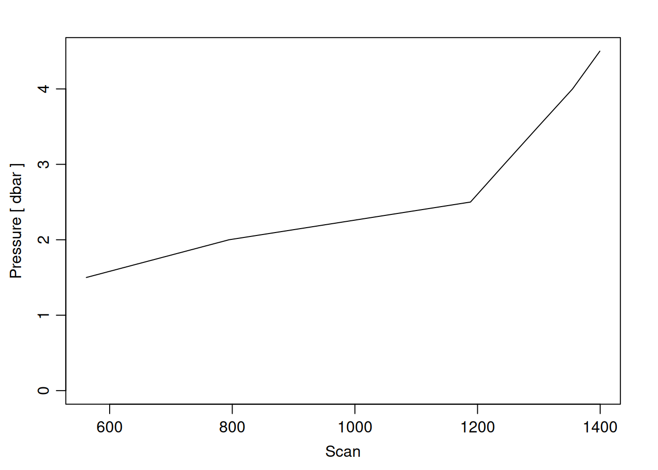 tryCatch({ trimmed_cast <-ctdTrim(cast) decimated_cast <-ctdDecimate(trimmed_cast, p =0.5)# plotting can cause the xlim failureplotScan(decimated_cast)# === export === cast_df <-as.data.frame(decimated_cast@data)# Add metadata cast_df <-mutate( cast_df,station = station_id,cruise_id = cruise_id )# drop NA rows left by cleaning cast_df <-subset(cast_df, !is.na(scan))# create folder if doesn't exist clean_data_loc <- here::here("data/02_clean")try(fs::dir_create(clean_data_loc))# save ctd to .csvwrite.csv(cast_df, glue("{clean_data_loc}/{params$cast_id}.csv"))}, error =function(e) {cat("\n=== CTD PROCESSING ERROR ===\n")cat("Cast ID:", params$cast_id, "\n")cat("Error message:\n", conditionMessage(e), "\n\n")# Safely inspect objects that might or might not exist when the error happenedif (exists("decimated_cast")) { df <-try(as.data.frame(decimated_cast@data), silent =TRUE)if (!inherits(df, "try-error")) {cat("Dataframe columns:\n")print(names(df))cat("\nSummary of key columns (scan, pressure, temperature, salinity if present):\n") known_cols <-intersect(c("scan", "pressure", "temp", "temperature", "salinity", "conductivity"), names(df))print(summary(df[known_cols], digits =3))cat("\nHead of dataframe:\n")print(head(df)) } else {cat("Could not extract dataframe from decimated_cast.\n") } } else {cat("decimated_cast was never created before the error.\n") }cat("\n=== END ERROR DEBUG INFO ===\n\n")})