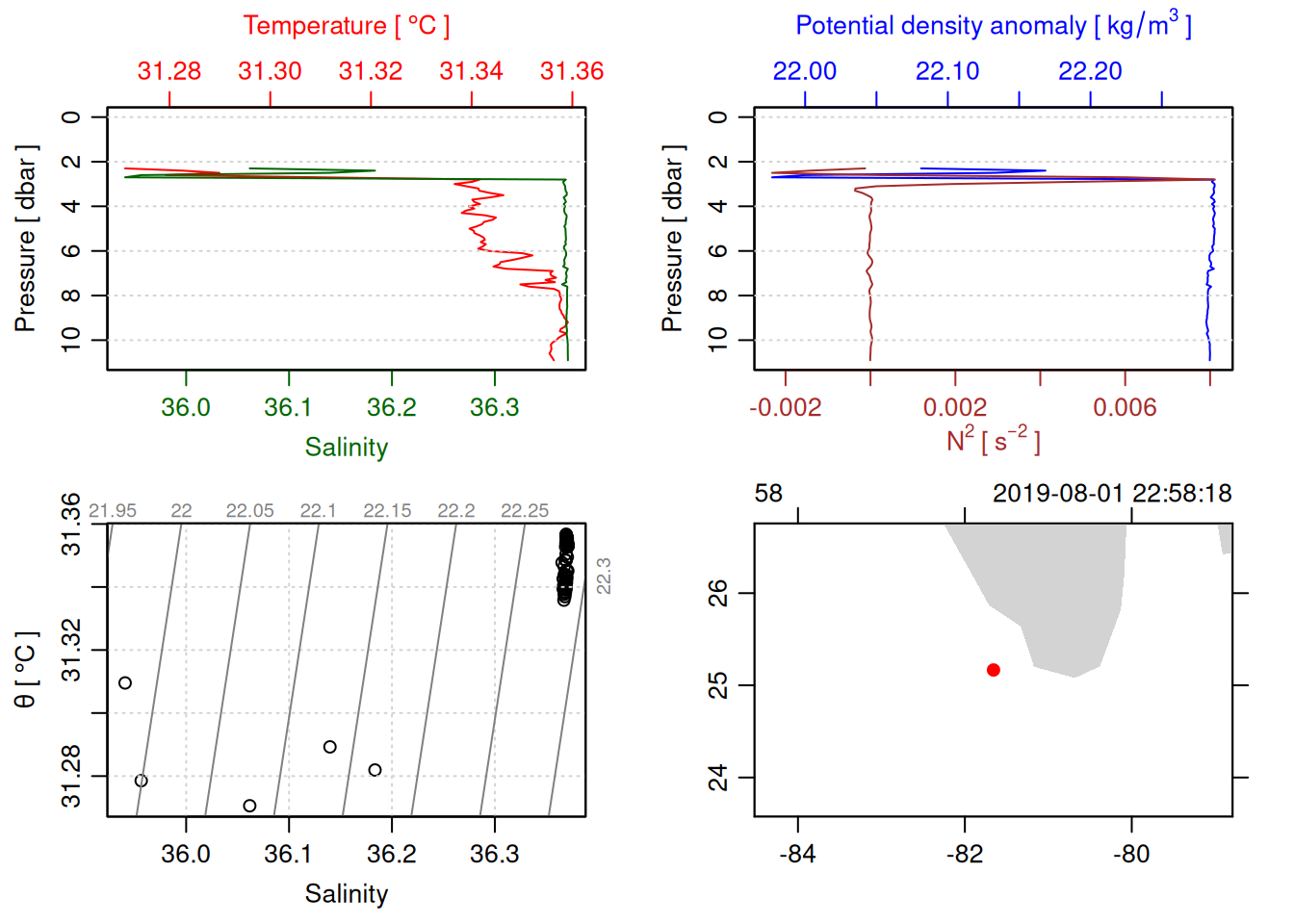# TODO: Include param here that specifies to handle QC flags. This should be done before converting to a OCE object. QC flag columns are listed in [this spreadsheet](https://docs.google.com/spreadsheets/d/1uCxEmJRqErU-HCQiRQ1FpyiIqtNaGgMSBI0WvrtwBRU/edit?gid=137286311#gid=137286311) and are not supposed to be included in the oce object. QC param values are : # 1 good# 2 +/- 3*std_dev# 4 +/- 5*std_dev# 9 missing# Data column should be set to NA if corresponding QC column has value greater than threshold (recommended threshold is 5*std_dev).# Will need to loop through *_qc columns.# TODO: drop spikes (how? low-pass?).# TODO: combine replicate sensors (eg temp1 temp2).
