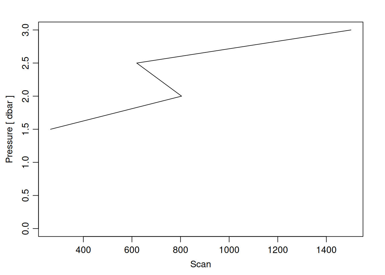 tryCatch({ trimmed_cast <-ctdTrim(cast) decimated_cast <-ctdDecimate(trimmed_cast, p =0.5)# plotting can cause the xlim failureplotScan(decimated_cast)# === export === cast_df <-as.data.frame(decimated_cast@data)# Add metadata cast_df <-mutate( cast_df,station = station_id,cruise_id = cruise_id )# drop NA rows left by cleaning cast_df <-subset(cast_df, !is.na(scan))# create folder if doesn't exist clean_data_loc <- here::here("data/02_clean")try(fs::dir_create(clean_data_loc))# save ctd to .csvwrite.csv(cast_df, glue("{clean_data_loc}/{params$cast_id}.csv"))}, error =function(e) {cat("\n=== CTD PROCESSING ERROR ===\n")cat("Cast ID:", params$cast_id, "\n")cat("Error message:\n", conditionMessage(e), "\n\n")# Safely inspect objects that might or might not exist when the error happenedif (exists("decimated_cast")) { df <-try(as.data.frame(decimated_cast@data), silent =TRUE)if (!inherits(df, "try-error")) {cat("Dataframe columns:\n")print(names(df))cat("\nSummary of key columns (scan, pressure, temperature, salinity if present):\n") known_cols <-intersect(c("scan", "pressure", "temp", "temperature", "salinity", "conductivity"), names(df))print(summary(df[known_cols], digits =3))cat("\nHead of dataframe:\n")print(head(df)) } else {cat("Could not extract dataframe from decimated_cast.\n") } } else {cat("decimated_cast was never created before the error.\n") }cat("\n=== END ERROR DEBUG INFO ===\n\n")})