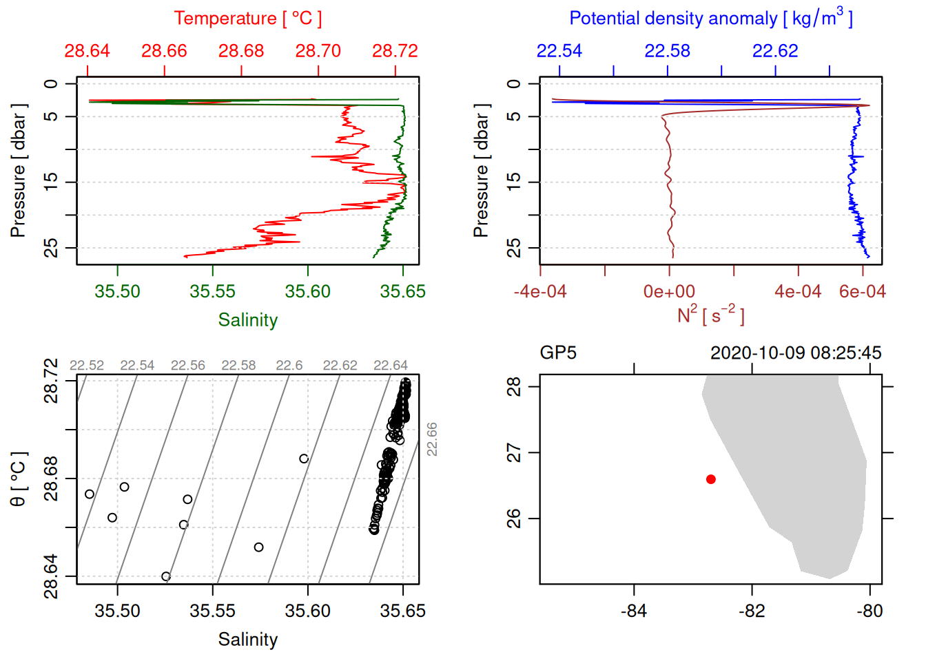 # TODO: Include param here that specifies to handle QC flags. This should be done before converting to a OCE object. QC flag columns are listed in [this spreadsheet](https://docs.google.com/spreadsheets/d/1uCxEmJRqErU-HCQiRQ1FpyiIqtNaGgMSBI0WvrtwBRU/edit?gid=137286311#gid=137286311) and are not supposed to be included in the oce object. QC param values are : # 1 good# 2 +/- 3*std_dev# 4 +/- 5*std_dev# 9 missing# Data column should be set to NA if corresponding QC column has value greater than threshold (recommended threshold is 5*std_dev).# Will need to loop through *_qc columns.# TODO: drop spikes (how? low-pass?).# TODO: combine replicate sensors (eg temp1 temp2).