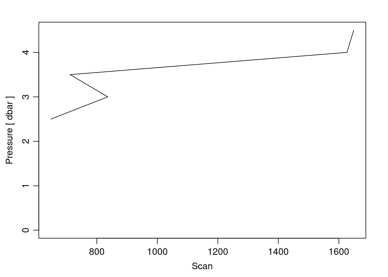 tryCatch({ trimmed_cast <-ctdTrim(cast) decimated_cast <-ctdDecimate(trimmed_cast, p =0.5)# plotting can cause the xlim failureplotScan(decimated_cast)# === export === cast_df <-as.data.frame(decimated_cast@data)# Add metadata cast_df <-mutate( cast_df,station = station_id,cruise_id = cruise_id )# drop NA rows left by cleaning cast_df <-subset(cast_df, !is.na(scan))# create folder if doesn't exist clean_data_loc <- here::here("data/02_clean")try(fs::dir_create(clean_data_loc))# save ctd to .csvwrite.csv(cast_df, glue("{clean_data_loc}/{params$cast_id}.csv"))}, error =function(e) {cat("\n=== CTD PROCESSING ERROR ===\n")cat("Cast ID:", params$cast_id, "\n")cat("Error message:\n", conditionMessage(e), "\n\n")# Safely inspect objects that might or might not exist when the error happenedif (exists("decimated_cast")) { df <-try(as.data.frame(decimated_cast@data), silent =TRUE)if (!inherits(df, "try-error")) {cat("Dataframe columns:\n")print(names(df))cat("\nSummary of key columns (scan, pressure, temperature, salinity if present):\n") known_cols <-intersect(c("scan", "pressure", "temp", "temperature", "salinity", "conductivity"), names(df))print(summary(df[known_cols], digits =3))cat("\nHead of dataframe:\n")print(head(df)) } else {cat("Could not extract dataframe from decimated_cast.\n") } } else {cat("decimated_cast was never created before the error.\n") }cat("\n=== END ERROR DEBUG INFO ===\n\n")})