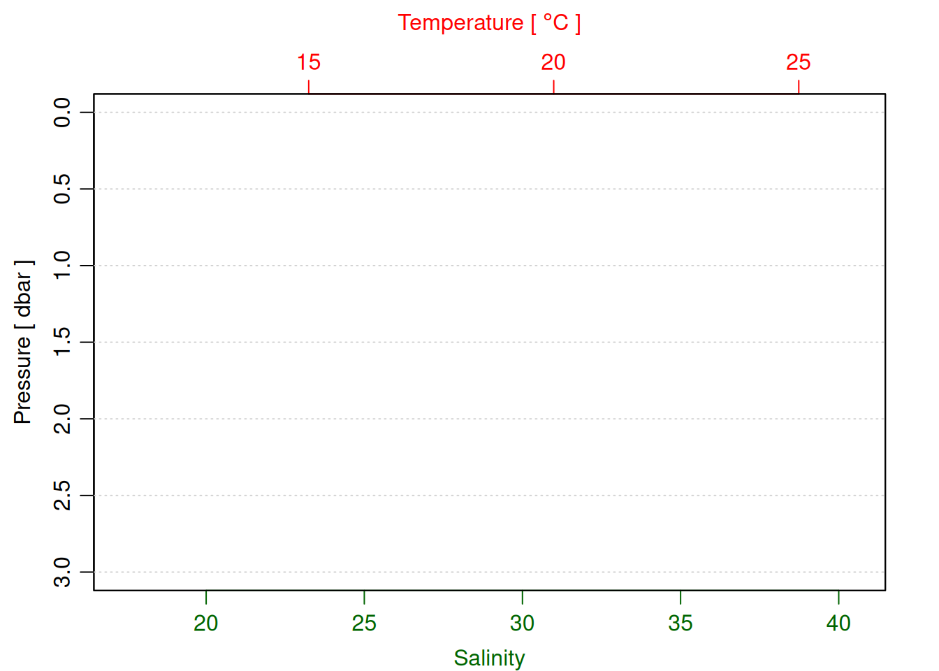 tryCatch({ oce::plotProfile(decimated_cast)# TODO: plot chl & do (prereq handle other_params in ctd_load_from_csv call above)}, error =function(e) {print("decimated cast not found")})