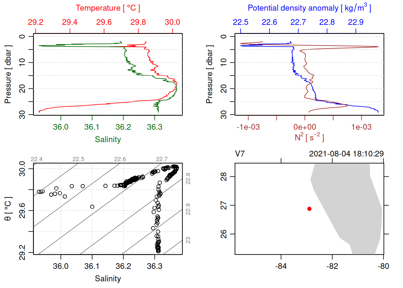 # TODO: Include param here that specifies to handle QC flags. This should be done before converting to a OCE object. QC flag columns are listed in [this spreadsheet](https://docs.google.com/spreadsheets/d/1uCxEmJRqErU-HCQiRQ1FpyiIqtNaGgMSBI0WvrtwBRU/edit?gid=137286311#gid=137286311) and are not supposed to be included in the oce object. QC param values are : # 1 good# 2 +/- 3*std_dev# 4 +/- 5*std_dev# 9 missing# Data column should be set to NA if corresponding QC column has value greater than threshold (recommended threshold is 5*std_dev).# Will need to loop through *_qc columns.# TODO: drop spikes (how? low-pass?).# TODO: combine replicate sensors (eg temp1 temp2).